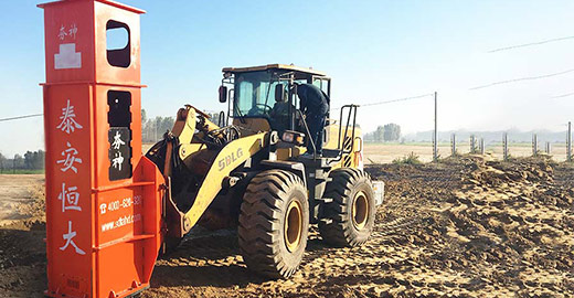 裝載機沖擊夯實機也叫“液壓夯實機”,是改裝在裝載機上并使用裝載機的運行挪動作用及液壓輸出,將自帶的上錘體(夯錘)提高到一定髙度后,上錘體(夯錘)在本身重力作用及其輔助推動力的效果下加快降落,根據持續、迅速擊中夯實路面,裝載機液壓夯實機適用建筑施工、地基土路肩、橋臺涵背、道路維修、瀝青道路修復及水渠等多種多樣地貌的夯實整平,尤其是可以填補夯機及沖擊式壓路機無法企及的邊緣地區,多種多樣工作形式可實現平面圖夯實、階梯夯實、管溝凹痕夯實的夯實解決